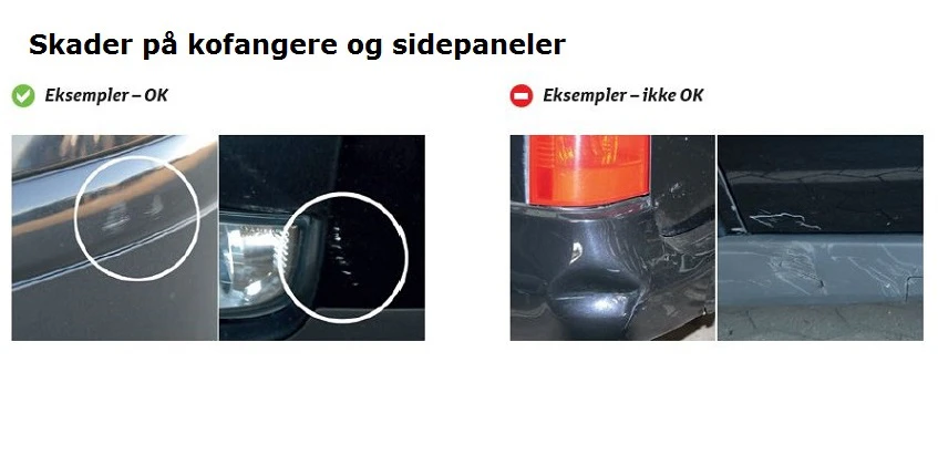 Skader på kofanger og sidepaneler gælder følgende: